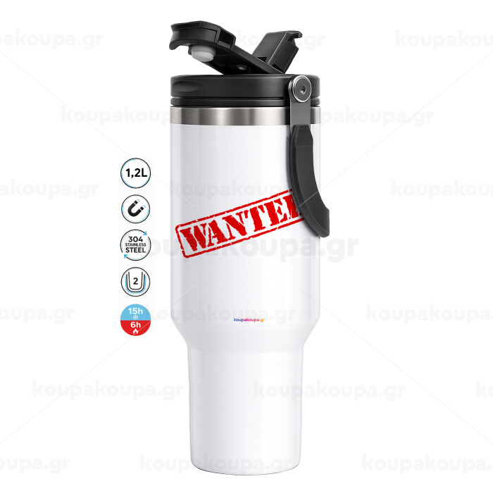 Wanted, Mega Tumbler με καπάκι, διπλού τοιχώματος (θερμό) 1,2L