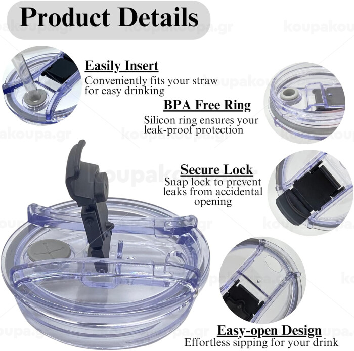 Άνοιγμα για καλαμάκι για να πίνετε εύκολα και χωρίς να χύνεται το ποτό σας.