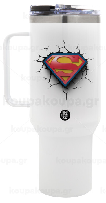 Superman cracked, Mega Tumbler με καπάκι, διπλού τοιχώματος (θερμό) 1,2L