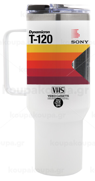 VHS sony dynamicron T-120, Mega Tumbler με καπάκι, διπλού τοιχώματος (θερμό) 1,2L