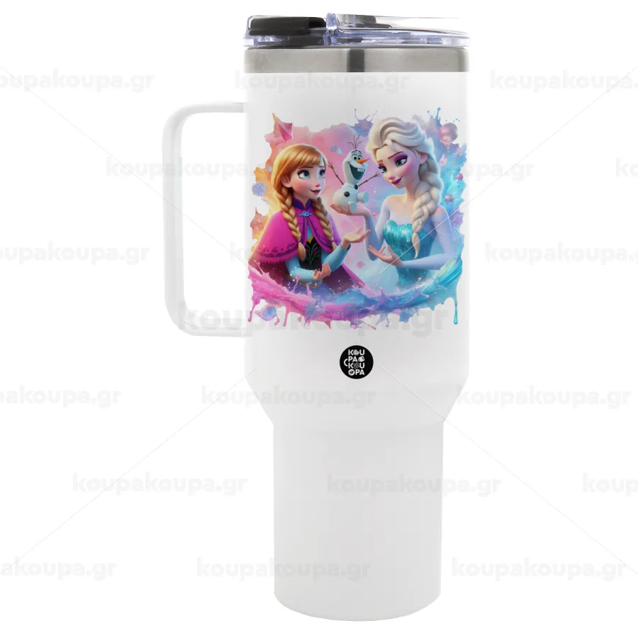 Έλσα & Άννα, Mega Tumbler με καπάκι, διπλού τοιχώματος (θερμό) 1,2L