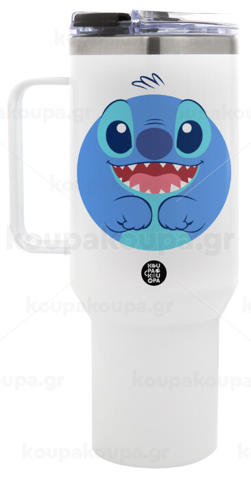 Lilo & Stitch blue, Mega Tumbler με καπάκι, διπλού τοιχώματος (θερμό) 1,2L