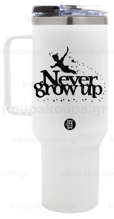 Peter pan, Never Grow UP, Mega Tumbler με καπάκι, διπλού τοιχώματος (θερμό) 1,2L