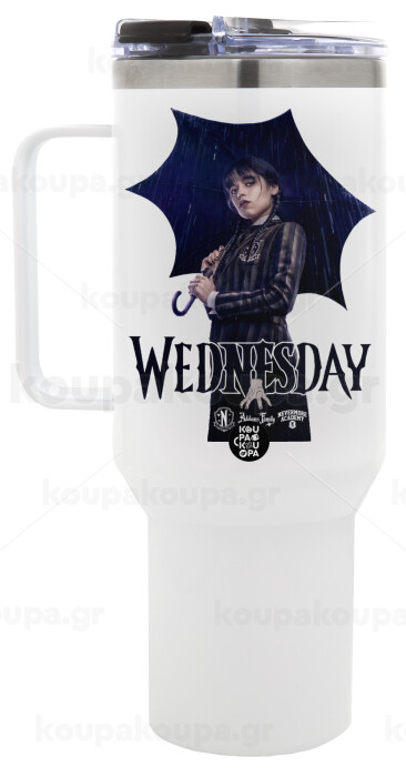 Wednesday rain, Mega Tumbler με καπάκι, διπλού τοιχώματος (θερμό) 1,2L