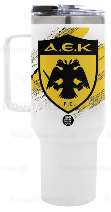 FC Α.Ε.Κ., Mega Tumbler με καπάκι, διπλού τοιχώματος (θερμό) 1,2L