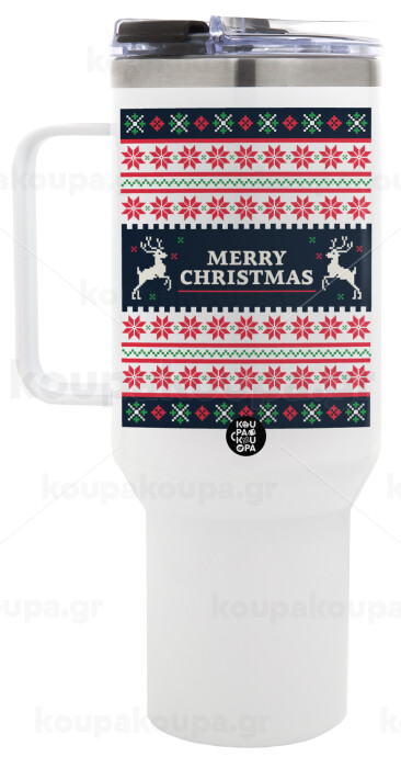 Merry Christmas Vintage, Mega Tumbler με καπάκι, διπλού τοιχώματος (θερμό) 1,2L