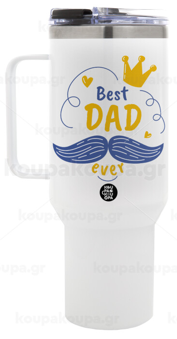 Best dad ever ο Βασιλιάς, Mega Tumbler με καπάκι, διπλού τοιχώματος (θερμό) 1,2L