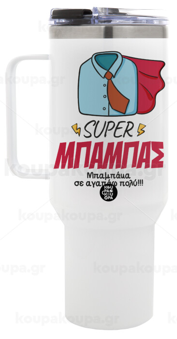 SUPER ΜΠΑΜΠΑΣ, Mega Tumbler με καπάκι, διπλού τοιχώματος (θερμό) 1,2L