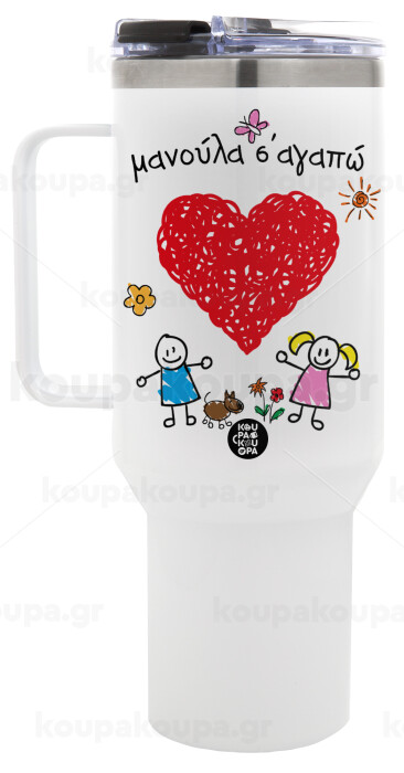 Μανούλα σ'αγαπώ!, Mega Tumbler με καπάκι, διπλού τοιχώματος (θερμό) 1,2L