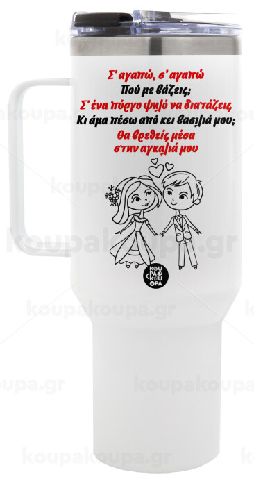 Σ΄ αγαπώ σ΄ αγαπώ που με βάζεις, Mega Tumbler με καπάκι, διπλού τοιχώματος (θερμό) 1,2L