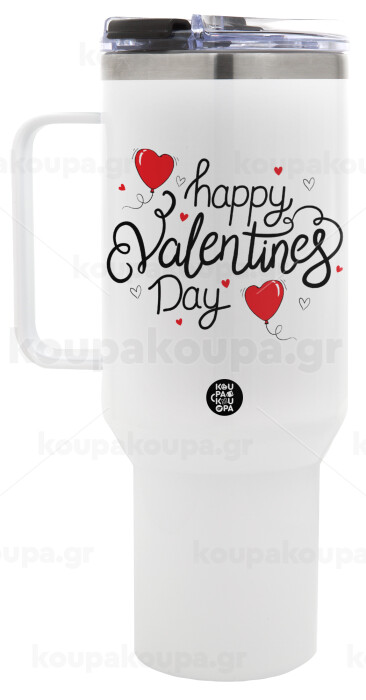 Happy Valentines Day!!!, Mega Tumbler με καπάκι, διπλού τοιχώματος (θερμό) 1,2L