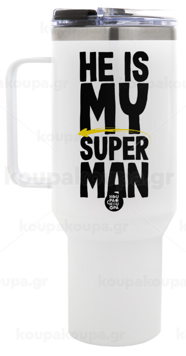 He is my superman, Mega Tumbler με καπάκι, διπλού τοιχώματος (θερμό) 1,2L