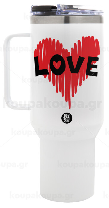 I Love You red heart, Mega Tumbler με καπάκι, διπλού τοιχώματος (θερμό) 1,2L