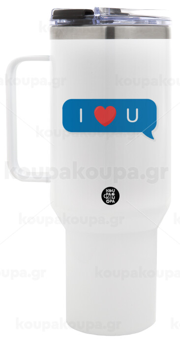I Love You text message, Mega Tumbler με καπάκι, διπλού τοιχώματος (θερμό) 1,2L