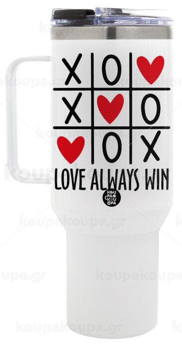 Love always win, Mega Tumbler με καπάκι, διπλού τοιχώματος (θερμό) 1,2L