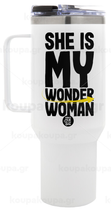 She is my wonder woman, Mega Tumbler με καπάκι, διπλού τοιχώματος (θερμό) 1,2L
