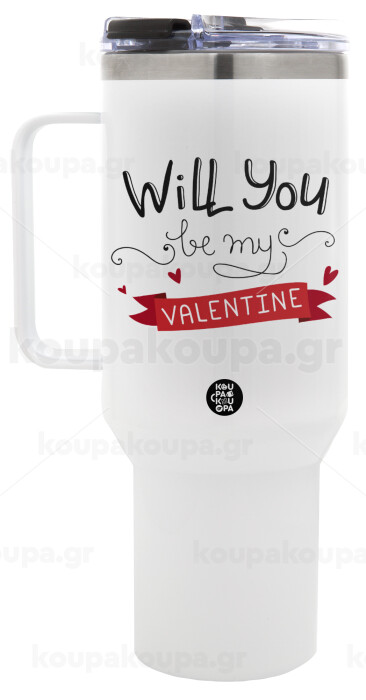 Will you be my Valentine???, Mega Tumbler με καπάκι, διπλού τοιχώματος (θερμό) 1,2L