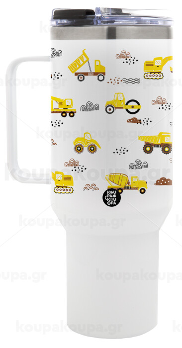 Αμαξάκια φορτωτές και μπουλντόζες, Mega Tumbler με καπάκι, διπλού τοιχώματος (θερμό) 1,2L