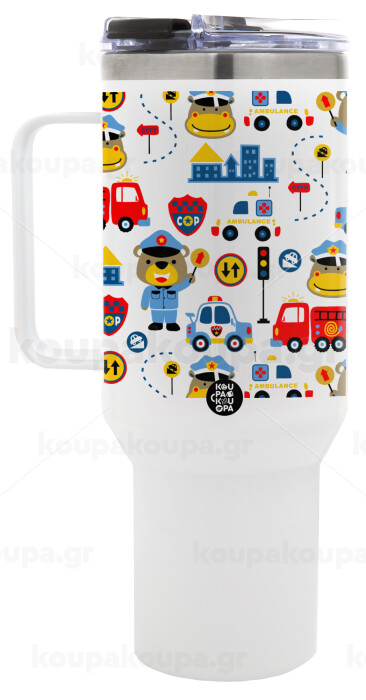 Rescue team cartoon, Mega Tumbler με καπάκι, διπλού τοιχώματος (θερμό) 1,2L