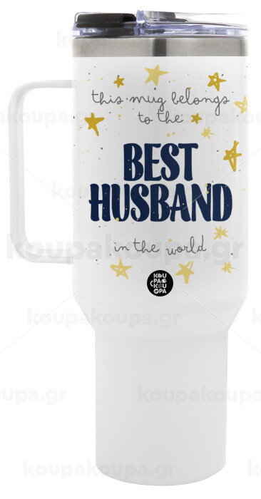 This mug belongs to the BEST HUSBAND in the world!, Mega Tumbler με καπάκι, διπλού τοιχώματος (θερμό) 1,2L