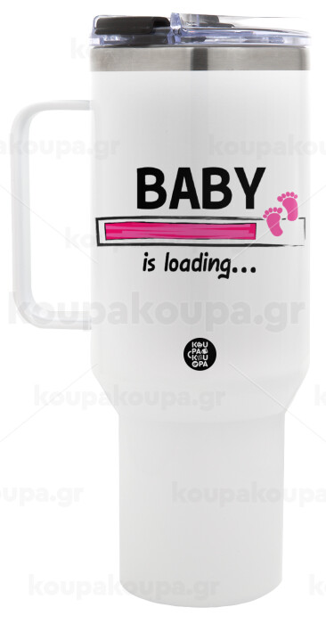 Baby is Loading GIRL, Mega Tumbler με καπάκι, διπλού τοιχώματος (θερμό) 1,2L