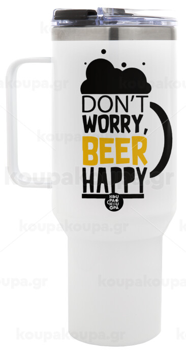 Don't worry BEER Happy, Mega Tumbler με καπάκι, διπλού τοιχώματος (θερμό) 1,2L