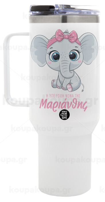 Η νονά μου, ελεφαντάκι ροζ, Mega Tumbler με καπάκι, διπλού τοιχώματος (θερμό) 1,2L