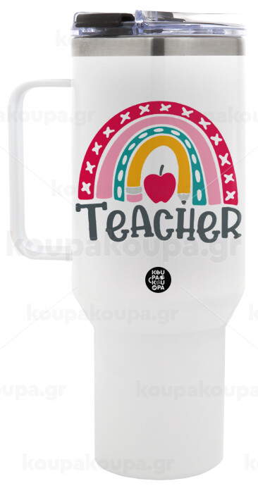 Rainbow teacher, Mega Tumbler με καπάκι, διπλού τοιχώματος (θερμό) 1,2L