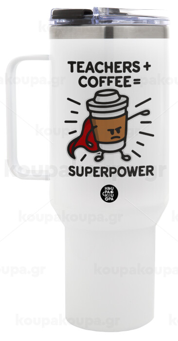 Teacher Coffee Super Power, Mega Tumbler με καπάκι, διπλού τοιχώματος (θερμό) 1,2L