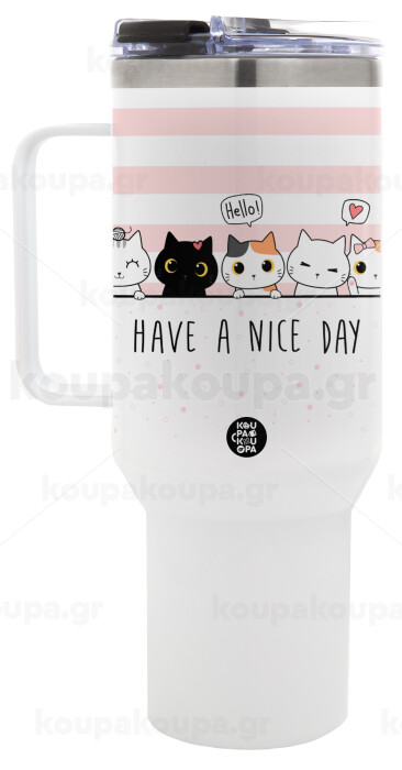 Have a nice day cats, Mega Tumbler με καπάκι, διπλού τοιχώματος (θερμό) 1,2L
