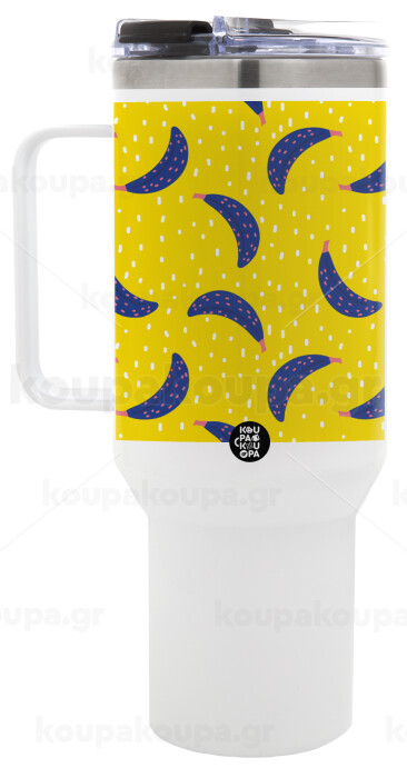Yellow seamless with blue bananas, Mega Tumbler με καπάκι, διπλού τοιχώματος (θερμό) 1,2L