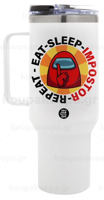 Among US Eat Sleep Repeat Impostor, Mega Tumbler με καπάκι, διπλού τοιχώματος (θερμό) 1,2L