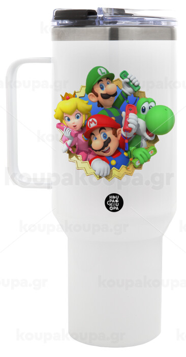 Super mario and Friends, Mega Tumbler με καπάκι, διπλού τοιχώματος (θερμό) 1,2L
