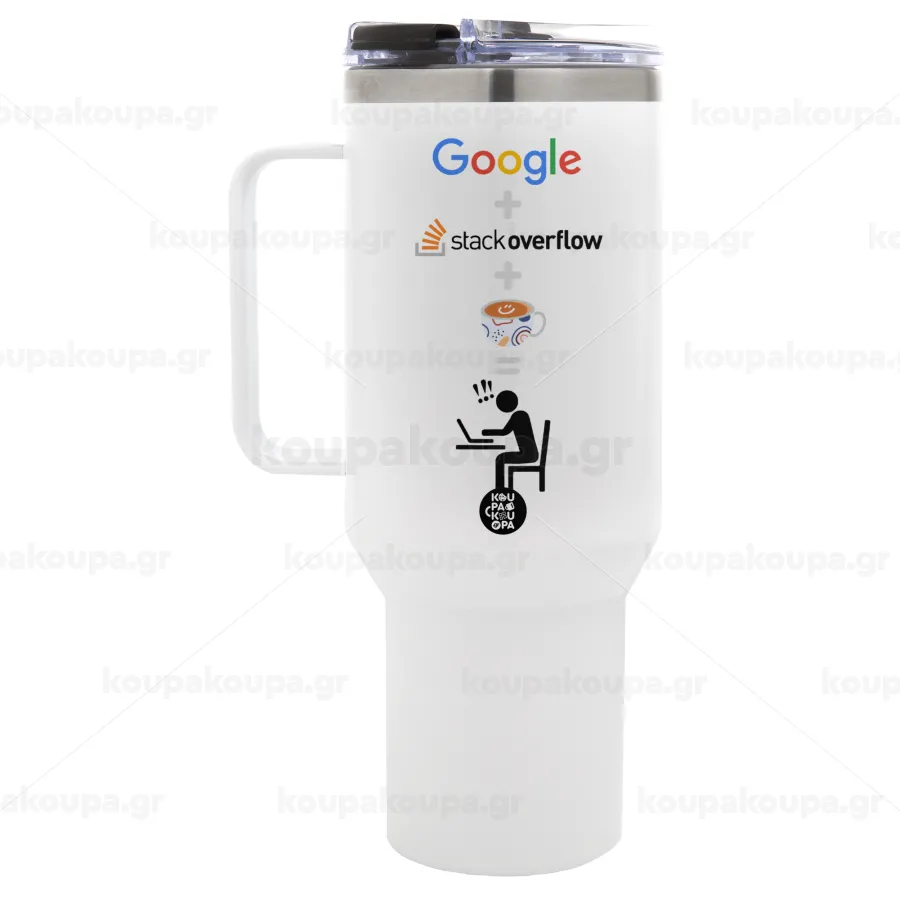 Google + Stack overflow + Coffee, Mega Tumbler με καπάκι, διπλού τοιχώματος (θερμό) 1,2L