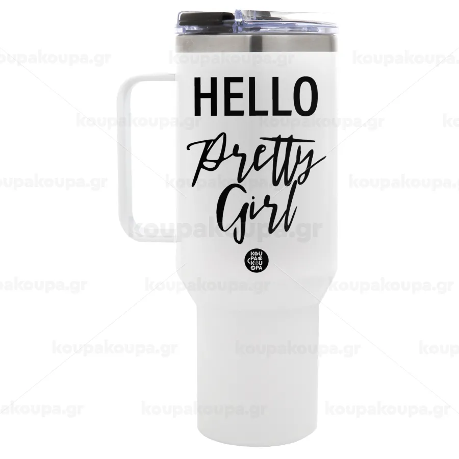 Hello pretty girl, Mega Tumbler με καπάκι, διπλού τοιχώματος (θερμό) 1,2L