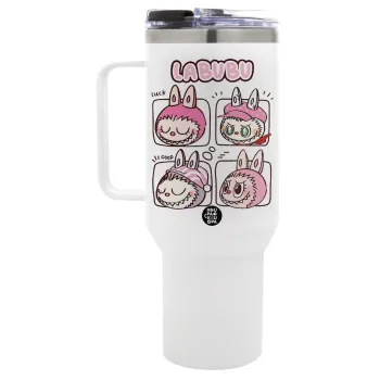 Labubu pink, Mega Tumbler με καπάκι, διπλού τοιχώματος (θερμό) 1,2L