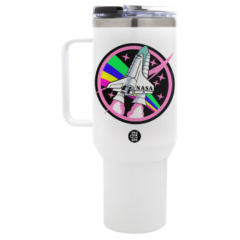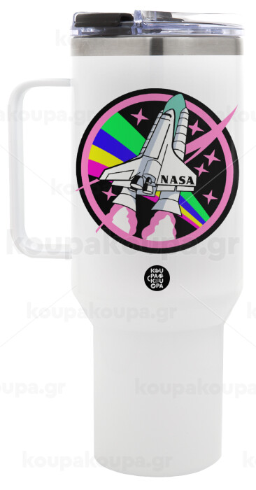 NASA pink, Mega Tumbler με καπάκι, διπλού τοιχώματος (θερμό) 1,2L