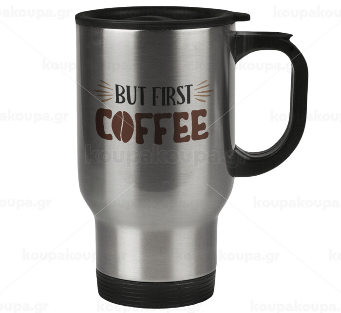 But first Coffee, Κούπα ταξιδιού ανοξείδωτη με καπάκι, διπλού τοιχώματος (θερμό) 450ml