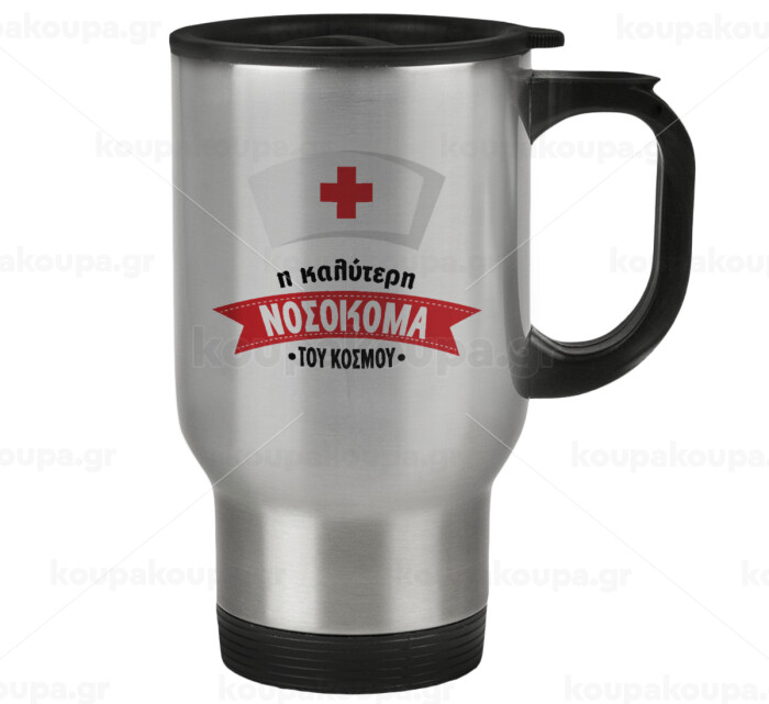 Η καλύτερη νοσοκόμα του κόσμου!!!, Κούπα ταξιδιού ανοξείδωτη με καπάκι, διπλού τοιχώματος (θερμό) 450ml