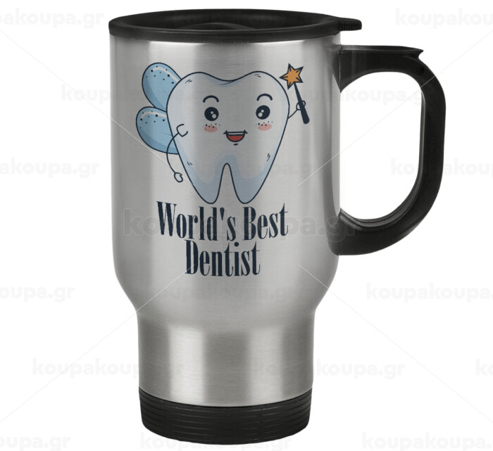 World's Best Dentist, Κούπα ταξιδιού ανοξείδωτη με καπάκι, διπλού τοιχώματος (θερμό) 450ml