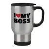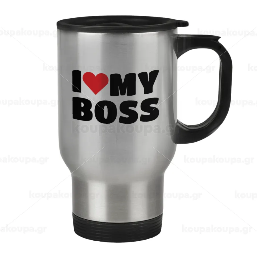 I LOVE MY BOSS, Κούπα ταξιδιού ανοξείδωτη με καπάκι, διπλού τοιχώματος (θερμό) 450ml