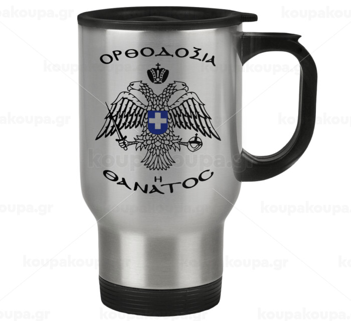 Ορθοδοξία ή Θάνατος, Κούπα ταξιδιού ανοξείδωτη με καπάκι, διπλού τοιχώματος (θερμό) 450ml