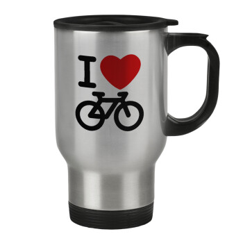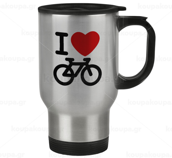 I love Bike, Κούπα ταξιδιού ανοξείδωτη με καπάκι, διπλού τοιχώματος (θερμό) 450ml