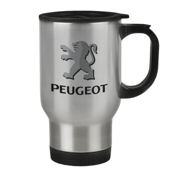 Peugeot, Κούπα ταξιδιού ανοξείδωτη με καπάκι, διπλού τοιχώματος (θερμό) 450ml