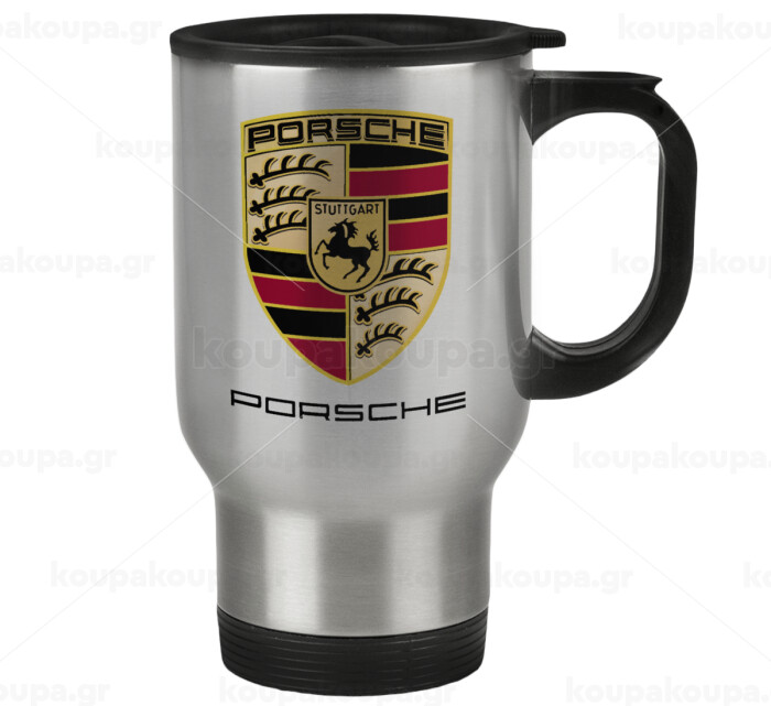 Porsche, Κούπα ταξιδιού ανοξείδωτη με καπάκι, διπλού τοιχώματος (θερμό) 450ml