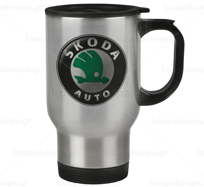 SKODA, Κούπα ταξιδιού ανοξείδωτη με καπάκι, διπλού τοιχώματος (θερμό) 450ml