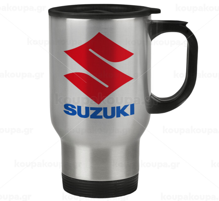 SUZUKI, Κούπα ταξιδιού ανοξείδωτη με καπάκι, διπλού τοιχώματος (θερμό) 450ml