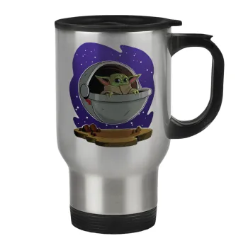 Baby Yoda mandalorian, Κούπα ταξιδιού ανοξείδωτη με καπάκι, διπλού τοιχώματος (θερμό) 450ml