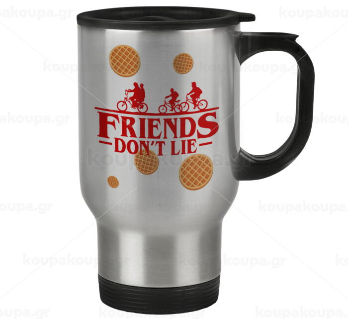 Friends Don't Lie, Stranger Things, Κούπα ταξιδιού ανοξείδωτη με καπάκι, διπλού τοιχώματος (θερμό) 450ml