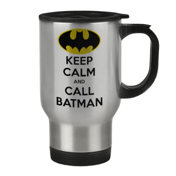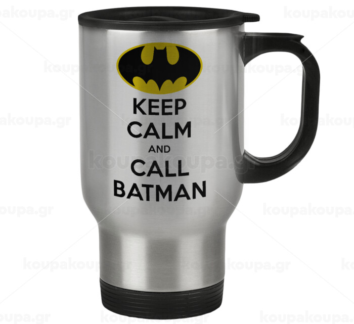 KEEP CALM & Call BATMAN, Κούπα ταξιδιού ανοξείδωτη με καπάκι, διπλού τοιχώματος (θερμό) 450ml